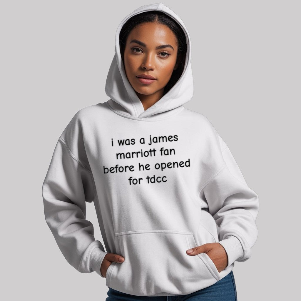 Unique and Meaningful Design: The "I Was a James Marriott Fan Before He Opened TDCC" message is designed for those who proudly support artists from the beginning of their careers. It’s a statement about being part of something special, and a nod to James Marriott’s evolution in the music industry.