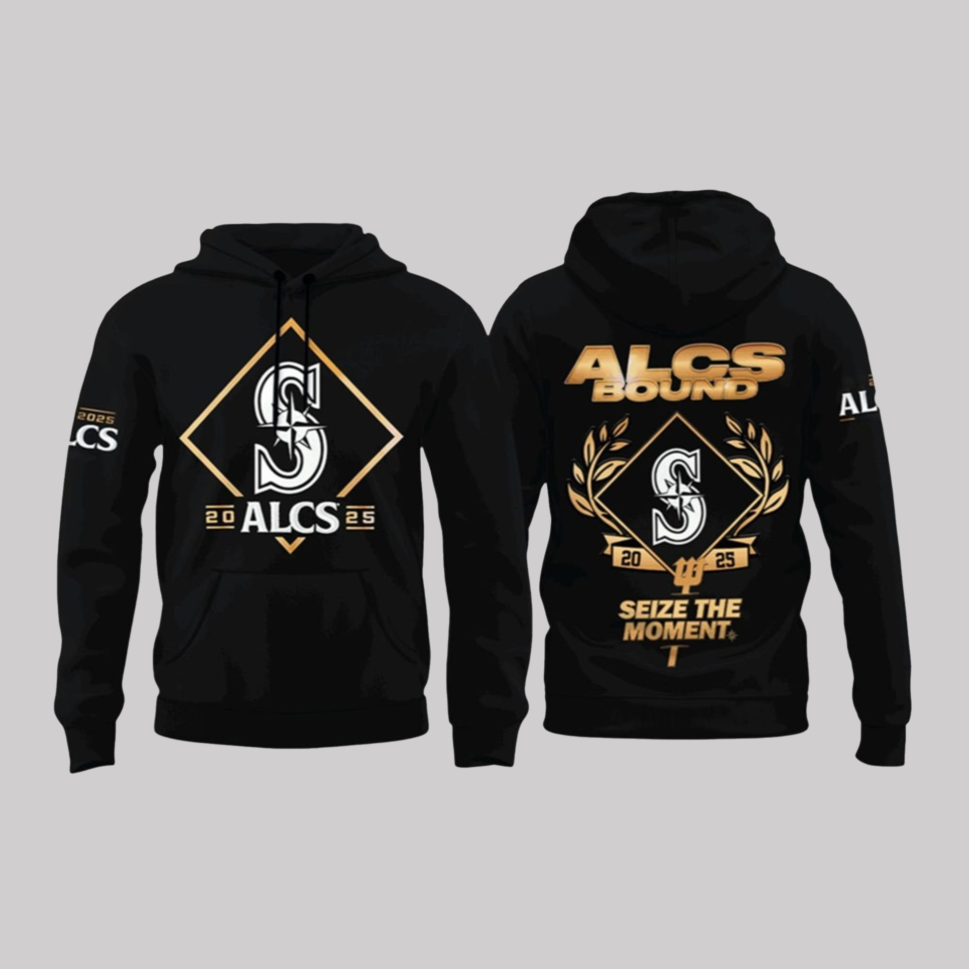 This ALCS Bound Champions 2025 Hoodie was made specifically for Mariners fans. With a bold, stylish design, this hoodie combines elements that represent hard work, dedication, and team spirit. The front of the hoodie features a dynamic diamond "S" logo and the words "ALCS 2025," representing the Mariners' rightful place in the ALCS. The back features the words “SEIZE THE MOMENT,” a call to unity that reflects the team’s determination and focus, with the ALCS logo prominently printed.