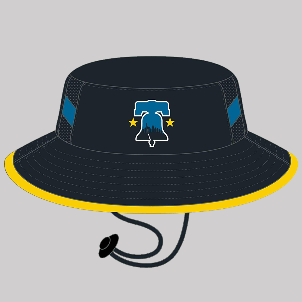 This isn’t just a typical stadium giveaway—it’s a statement. Featuring the iconic Liberty Bell logo accented with golden stars on a deep navy base, the hat immediately stands out. The crown showcases a sleek blue “T” detail, while the brim is finished with a vibrant yellow trim, giving it a modern yet stylish edge. Equipped with an adjustable chin strap, the hat is perfect for sunny days, tailgate parties, and long afternoons at the ballpark.