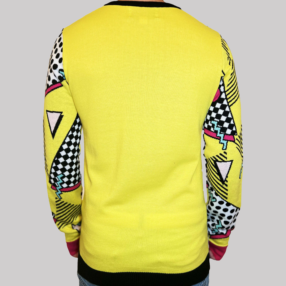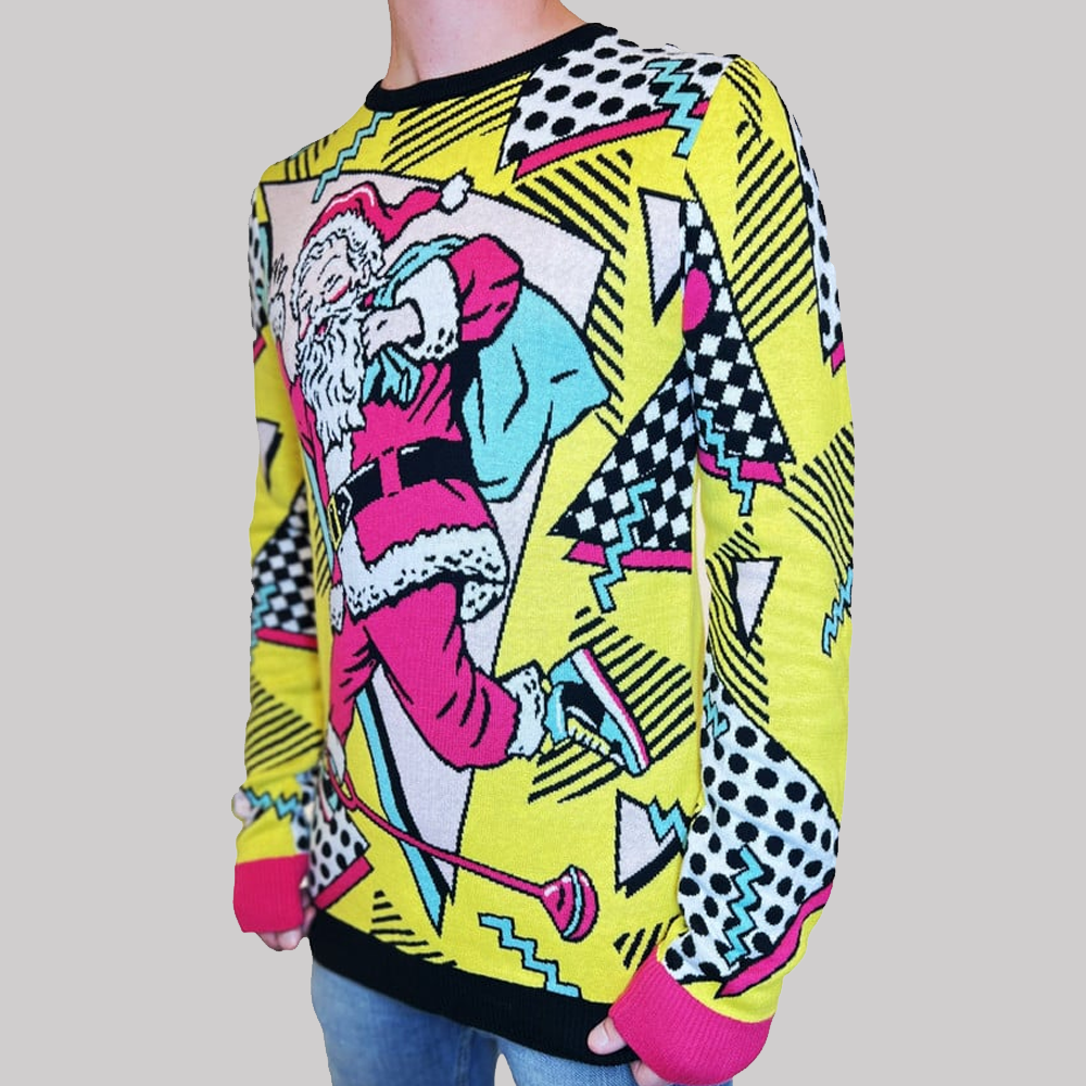 Step into the holiday season with a carefree spirit and nostalgic charm in the Retro Santa Ugly Christmas 2025 Sweater This eye-catching Christmas sweater combines the classic look of Santa Claus with the bold, vibrant, and playful energy of 90s retro design. From the neon yellow background and geometric patterns to the standout comic-book-style Santa illustration, this sweater is designed to grab attention, spark conversations, and make you the star of every festive gathering.