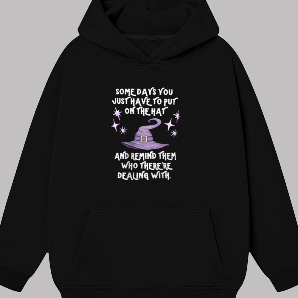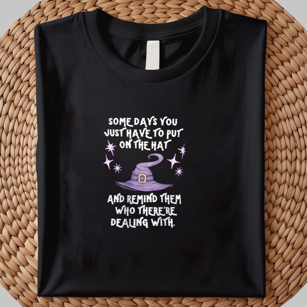 Whether you're heading to a Halloween party or simply gearing up for Monday meetings, this shirt is your subtle armor that shows off your fierce spirit. Wear it and let the world know: you're not to be messed with. The "Some Days You Just Have to Put On the Hat" shirt is more than just fashion—it’s a spell. A mindset. A movement.