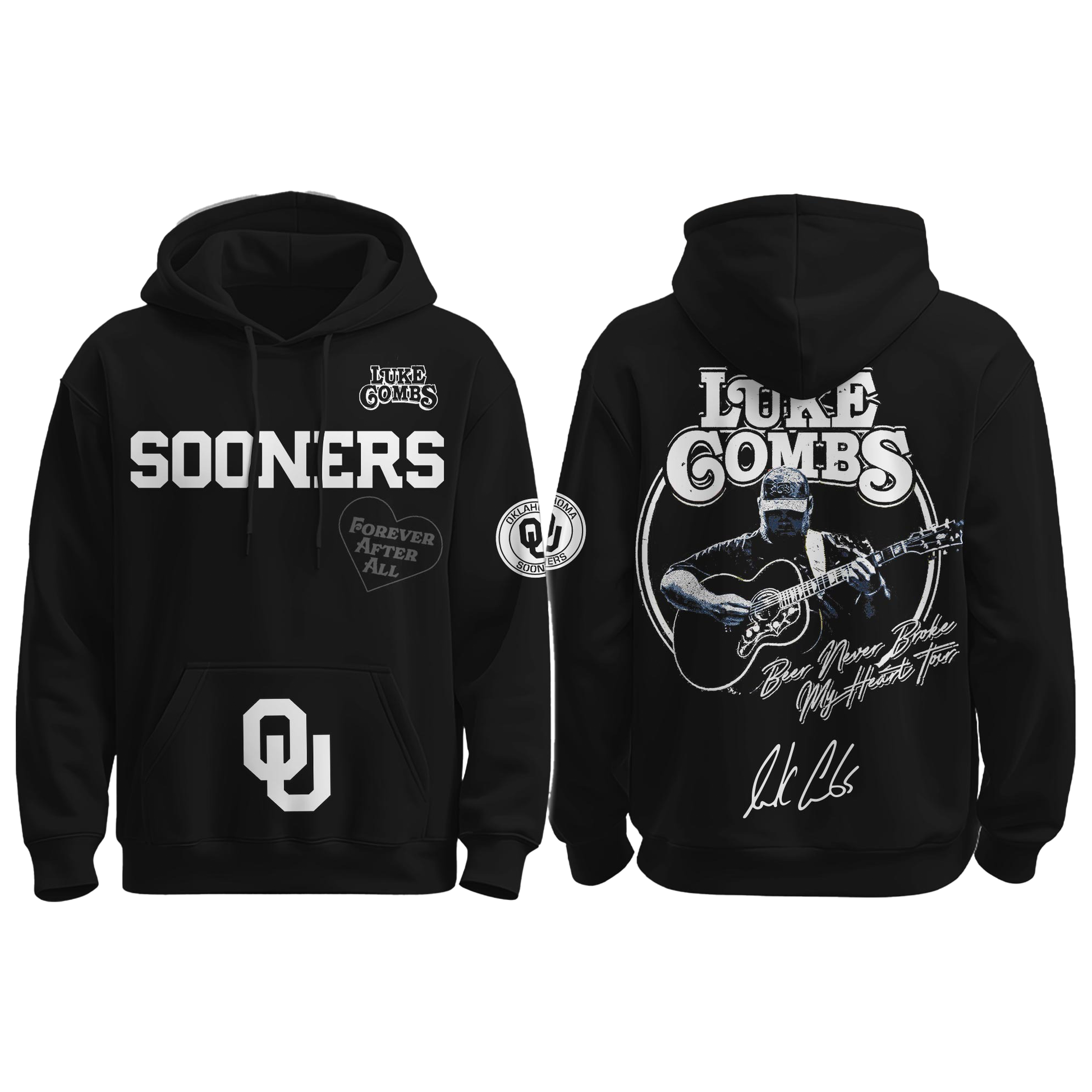 The Sooners, the iconic athletic team of the University of Oklahoma, have teamed up with Luke Combs, one of the biggest stars in country music, to create a one-of-a-kind piece. This collaboration is more than just style, it's a fusion of Oklahoma football pride and Luke's legendary music. Part of the "Beer Never Broke My Heart" 2025 tour, this hoodie is both a memento from one of the most anticipated tours of the year and a stylish tribute to the Sooners.
