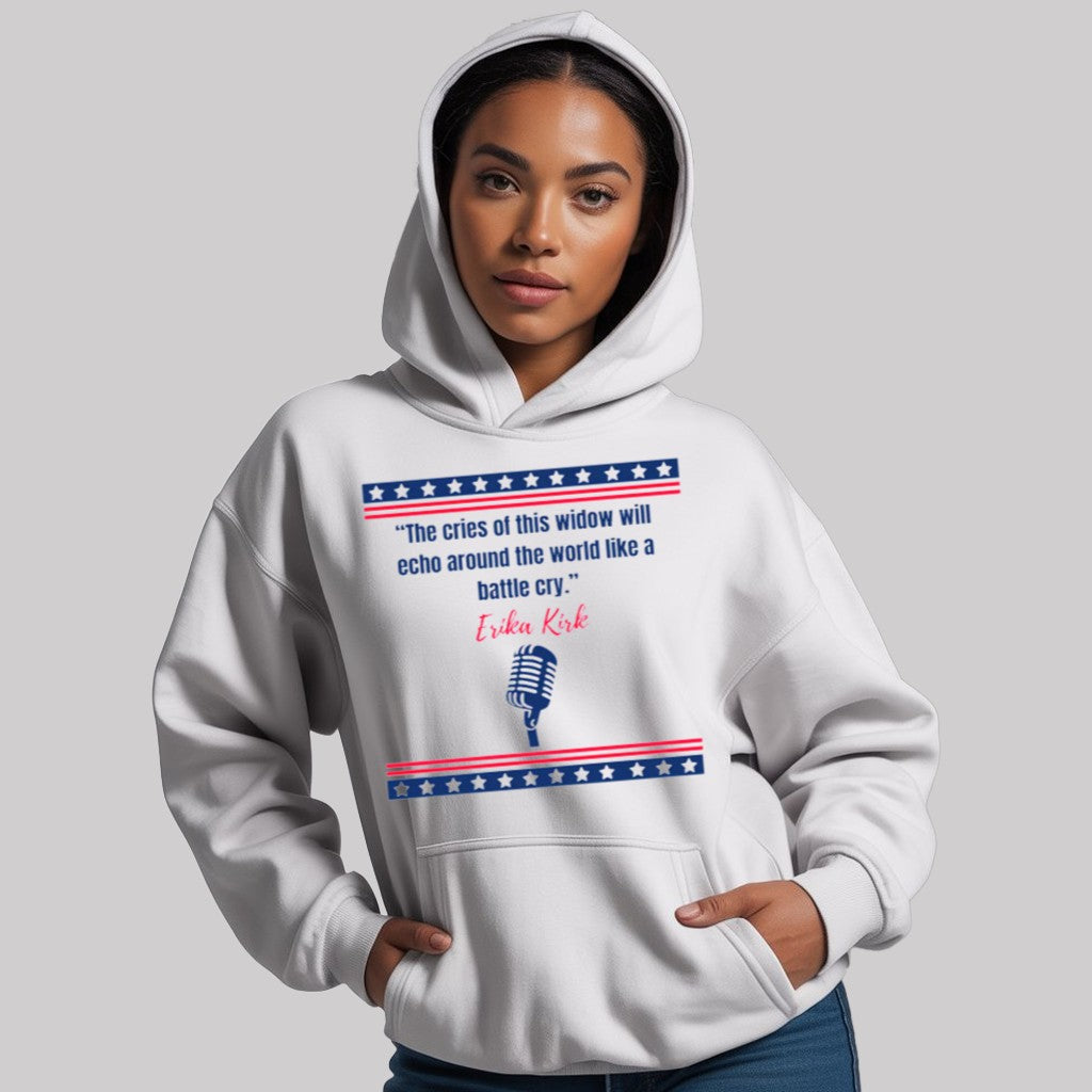 The Cries Of This Window Will Echo Around The World Like A Battle Cry Erika Kirk Shirt – A Bold Statement of Strength and Patriotism